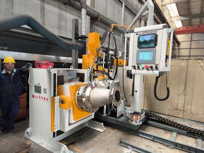- • 卡盘可电动翻转,工件可水平旋转焊接,焊接平焊法兰时也可进行倾斜角度实现船型焊;