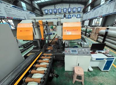 PSM系列管道切割带锯床以双金属带锯条作为切削工具,用于管材及型钢的切断加工,可单机使用,也可配套生产线进行自动化流水作业。