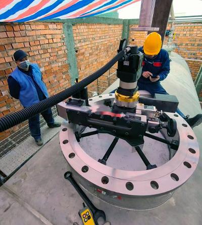 FMM系列法兰端面车削机广泛运用于容器、核电、石化、海洋石油、冶金等众多领域的法兰端面车削, 专为法兰面、水纹线、密封槽加工而设计研发,采用高精密直线导轨和滚珠螺杆确保加工精度。 机器采用内卡装夹的方式,固定在管道或法兰的内口,操作方便,易于安装、拆卸, 是法兰面修复与加工及其他多种形式的密封面加工的理想装备。
